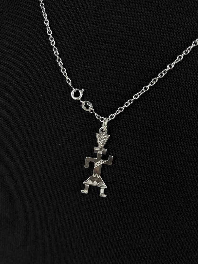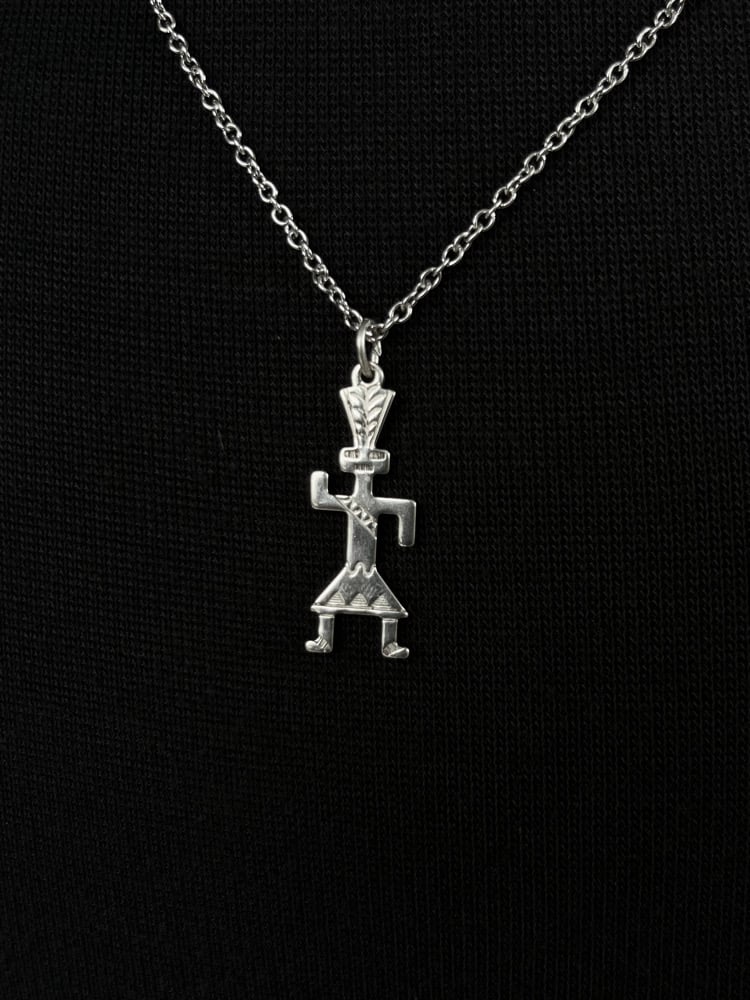 .925 Silver Native American Tribal Figure Pendant Necklace