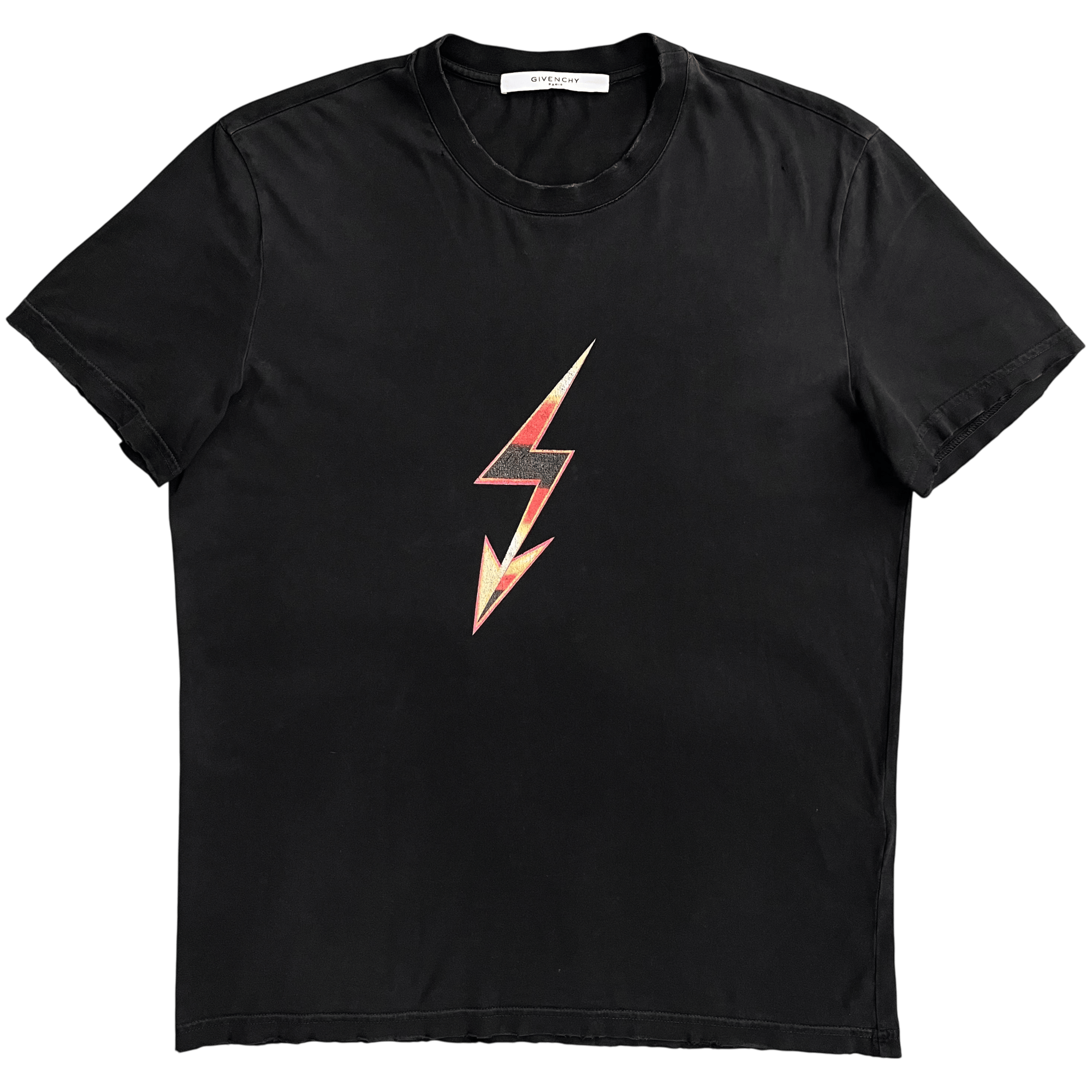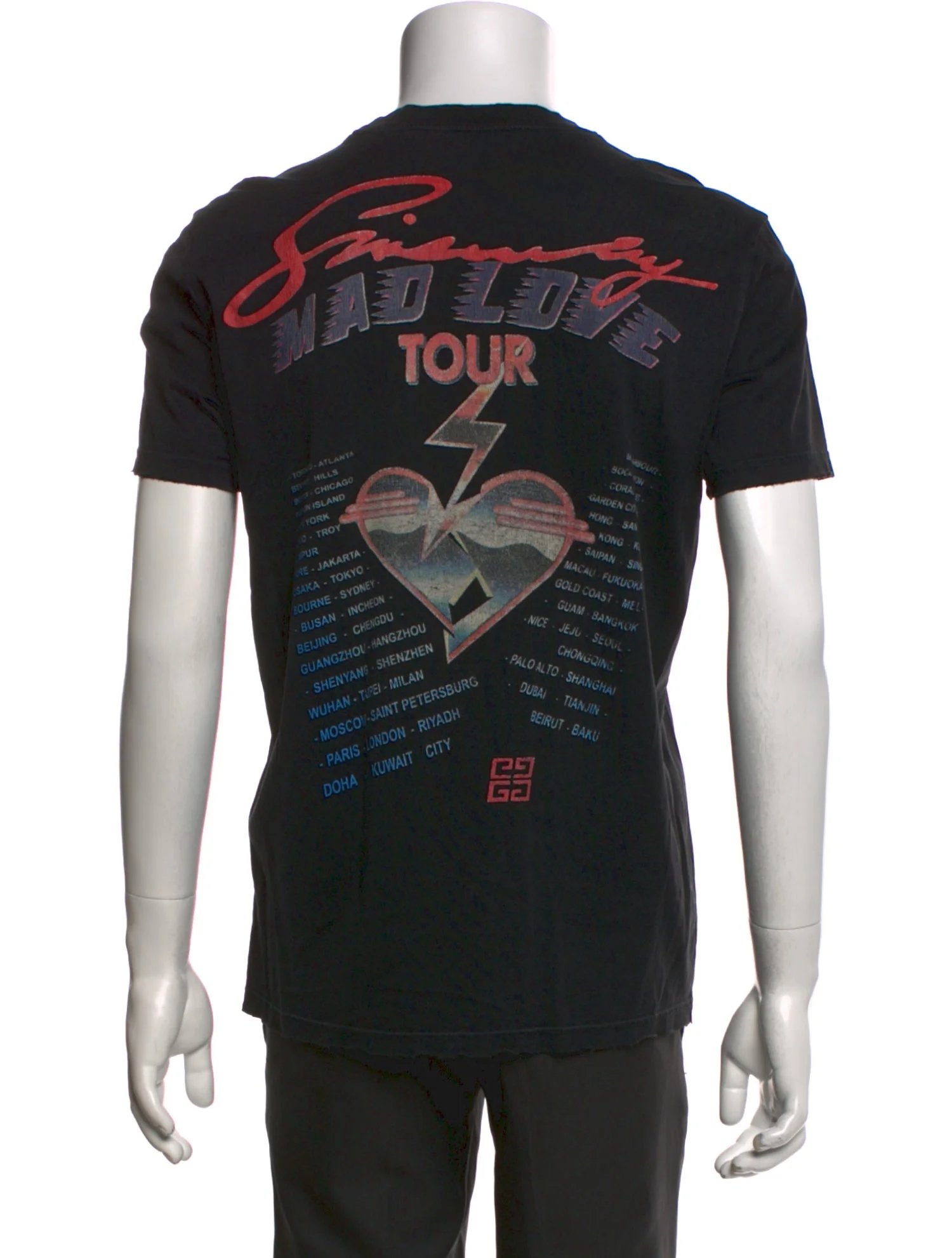 This cotton tee features graphics inspired by vintage rock band tees and has intentional distressing along the edges to imitate age. Retail: $520