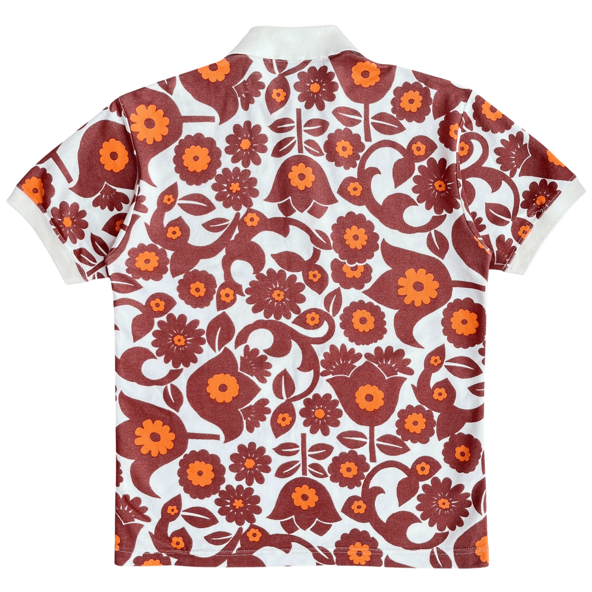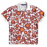 This soft cotton polo from S/S 2005 features an abstract 2D floral print throughout with off-white cuffs and collar.