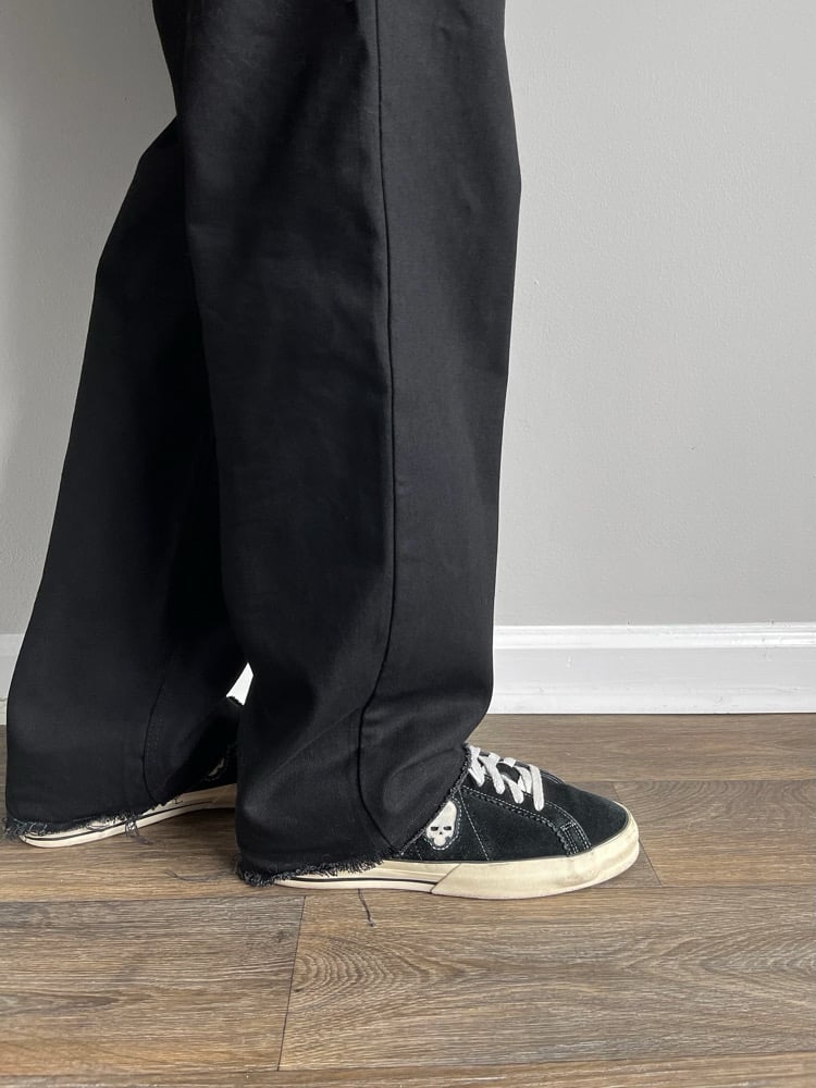 Originally released in S/S 2001, and re-release in 2012: these black suede sneakers were inspired by Converse's classic "One Star" model, a staple of Kurt Cobain's rotation. Takahiro Miyashita's version replaced the star with a skull.