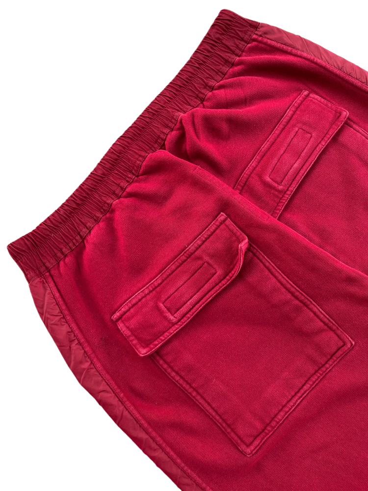 These F/W 2020 baggy sweats are made of premium cotton fleece in “BRUISE,” a beautiful maroon color. The bottoms feature tonal nylon side stripe panels, 4 pockets, and Rick’s signature elongated drawstrings.