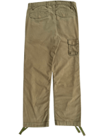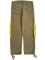 These 6 pocket olive green, woven cotton pants feature hidden yellow mesh panels on both legs and 2 small snap pockets.