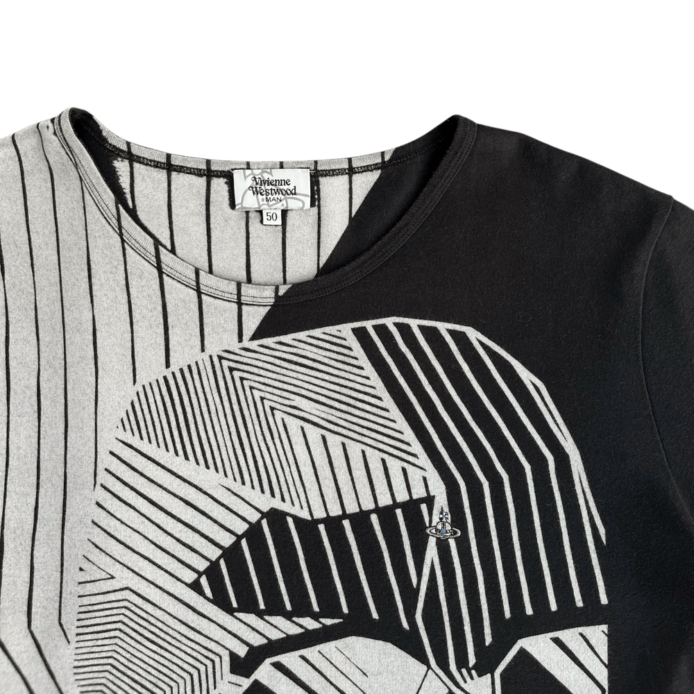 This 100% cotton t-shirt features a full front screenprint of a geometric skull and the classic embroidered orb logo at the left chest.