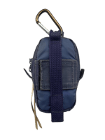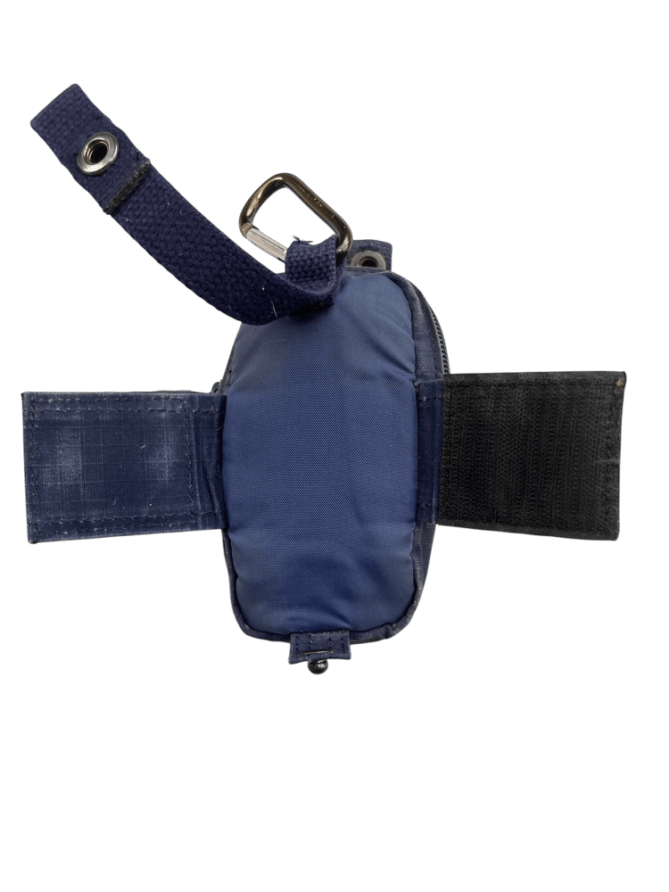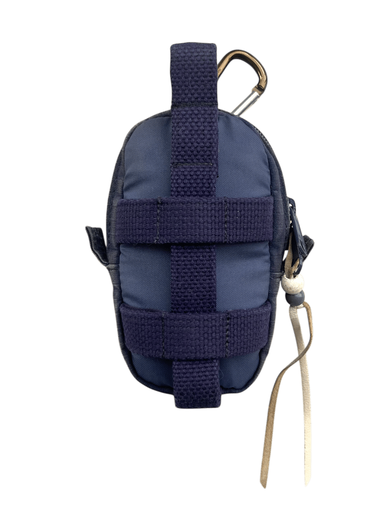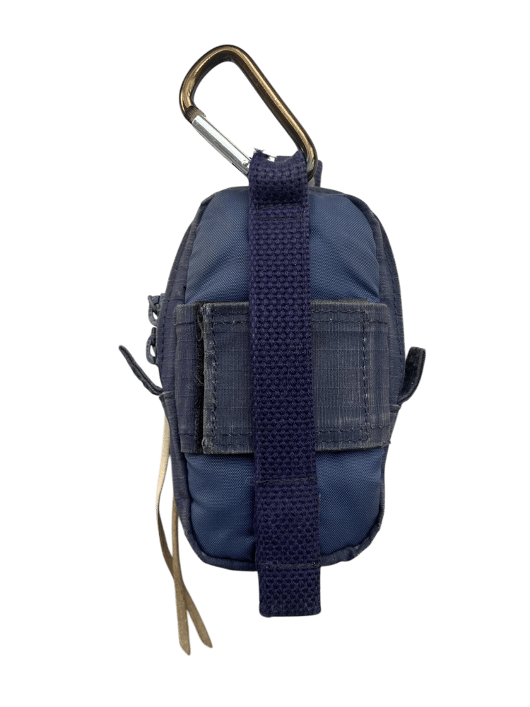 This grenade shaped bag is made of navy ripstop & poly. It features 1 main pocket, cargo straps for additional storage.